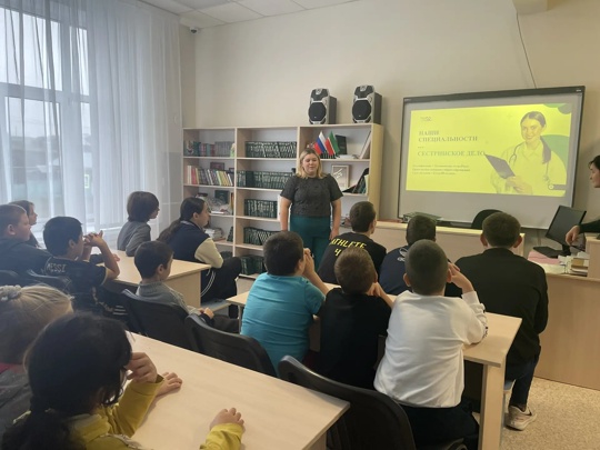Сегодня нашу школу МБОУ "Большетиганская ООШ имени А. Баттала" посетила гостья — Шамсутдинова Алина Равилевна, студентка третьего курса ГАПОУ