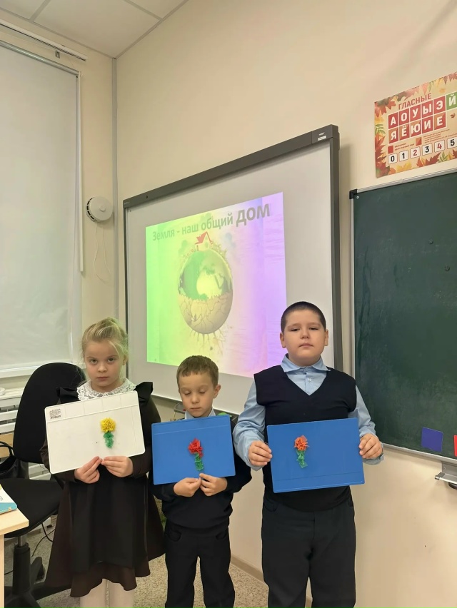 С учениками провели беседу о проблеме экологии. Демонстрировали то, что и они могут кое-что сделать для улучшения среды обитания. Чтобы развивать личностных качеств ребёнка, в конце мероприятия, была организована работа с использованными материалами. Дети из медицинских масок сделали поделки. Получились очень красивые цветы. -