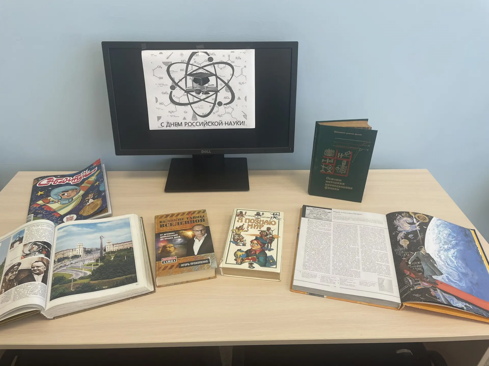 В Библиотеке к этому дню, оформлена книжная выставка «Наука на книжной полке» . На ней представлены самые разнообразные книги и энциклопедии, касающиеся научных открытий и изобретений в разных сферах -