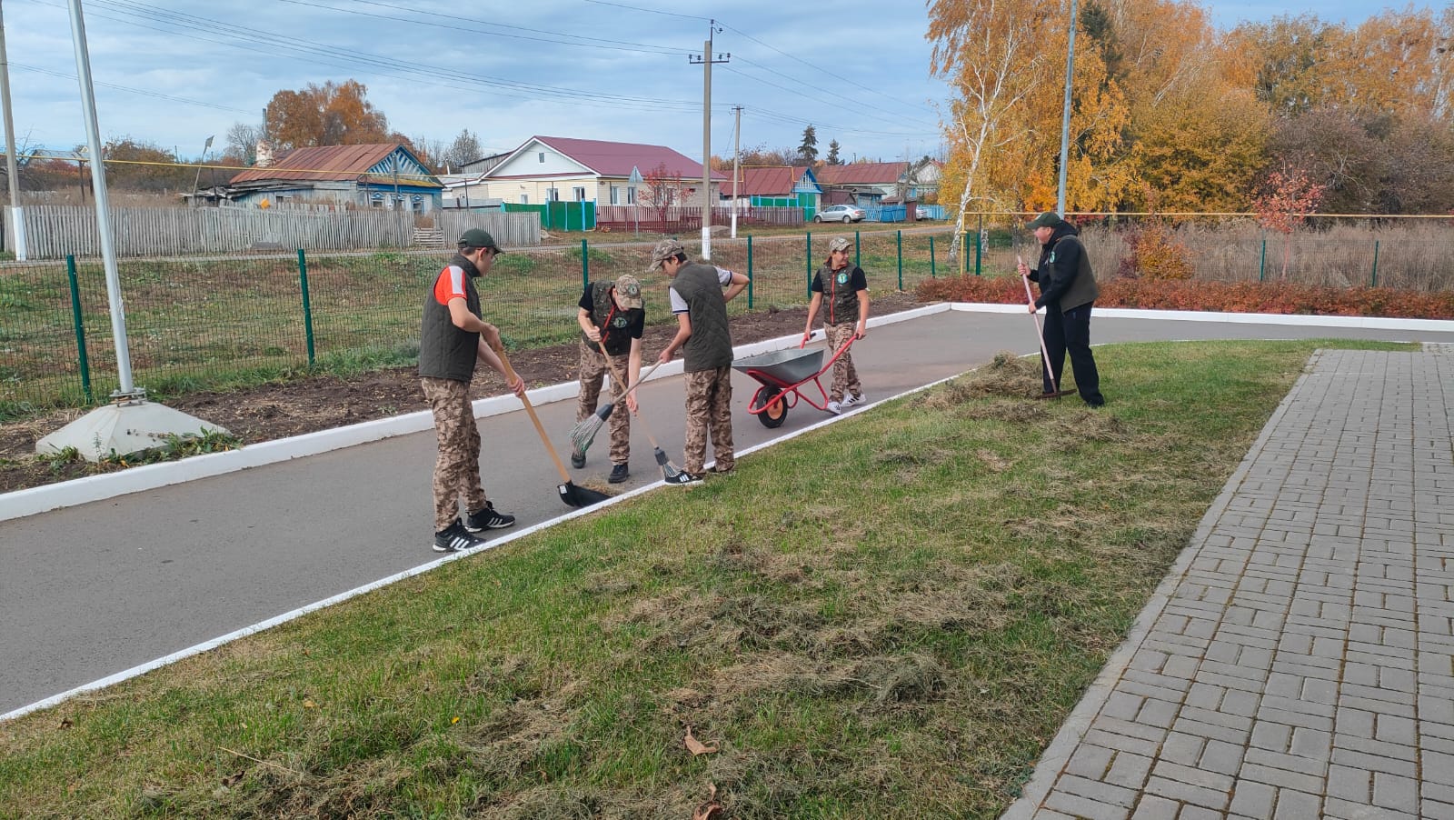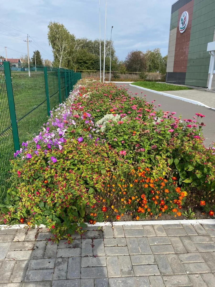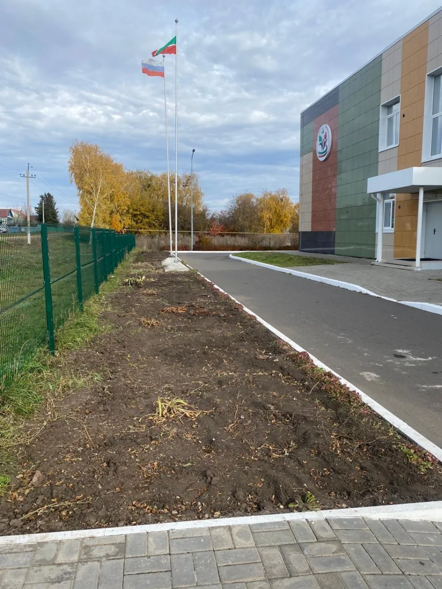 Все лето наша школа утопала в цветах. Но осень требует уборки территории. Благодарим председателя СП Гатина М. А. за помощь техникой.