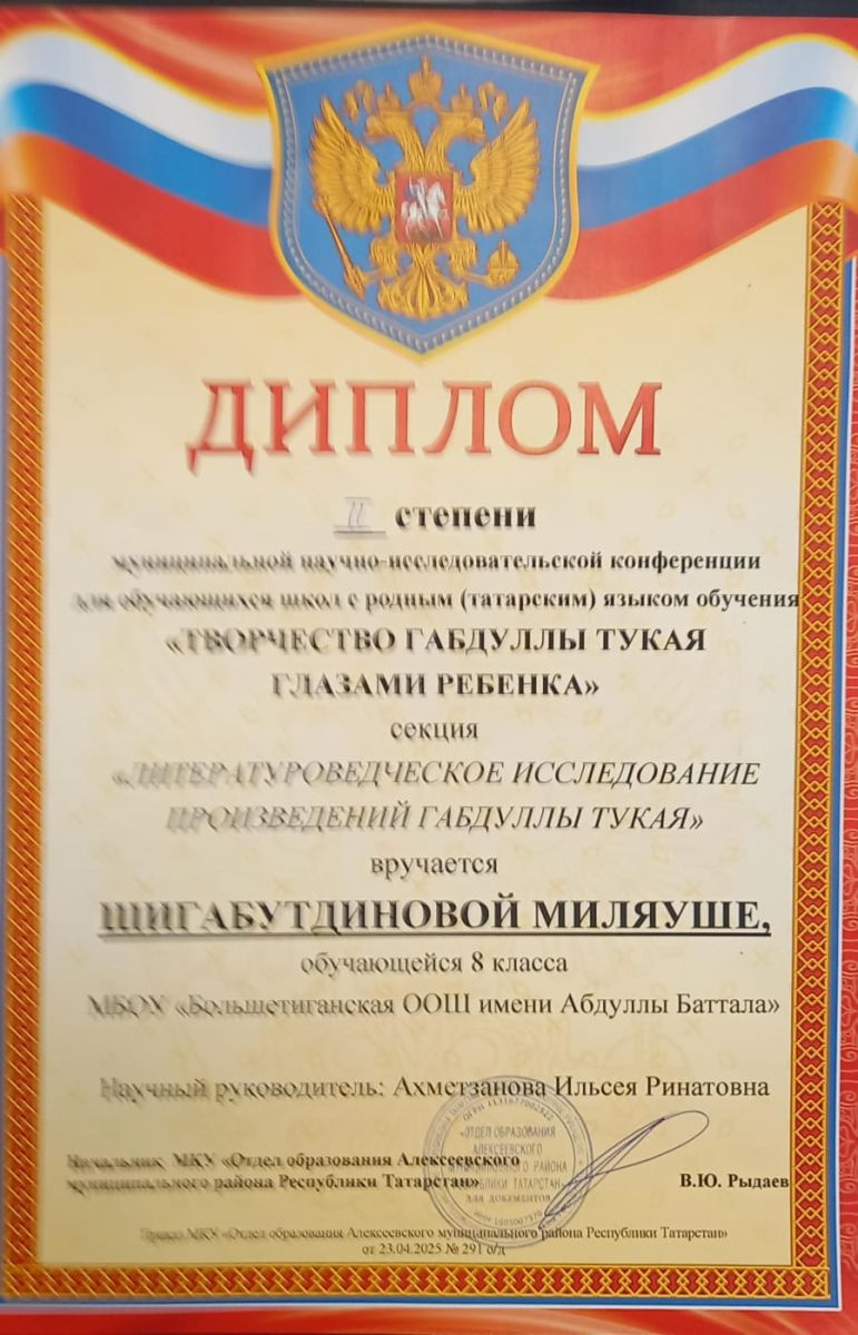 Муниципальное бюджетное общеобразовательное учреждение "Большетиганская основная общеобразовательная школа имени Абдуллы Баттала" Алексеевского муниципального района Республики Татарстан/ Муниципаль бюджет гомуми белем бирү учреждениесе Татарстан Республикасы Алексеевск муниципаль районының "Абдулла Баттал исемендәге Зур Тигәнәле төп гомуми белем бирү мәктәбе"