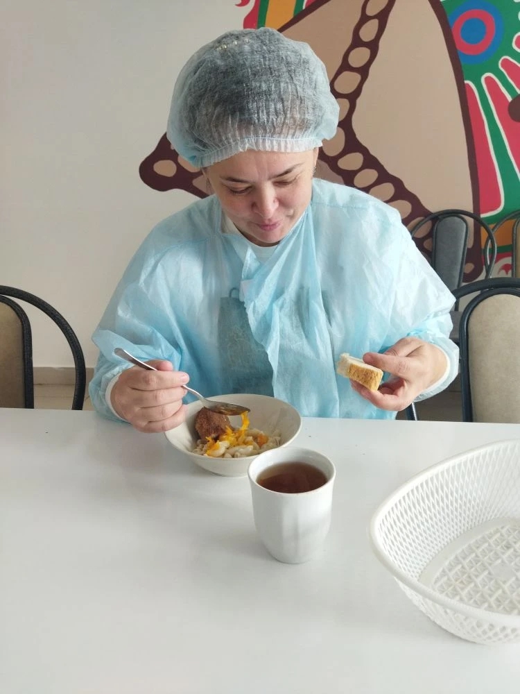 Мама третьеклассника посетила школьную столовую. Она попробовала блюда, подаваемые учащимся. Еда была теплой, вкусной и хорошо приготовленной. Родительница осталась довольно результатом.