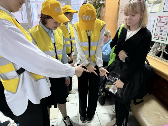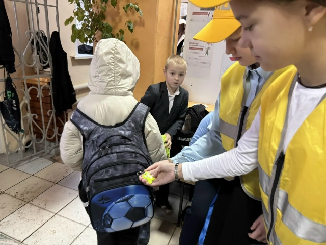 Сегодня отряд ЮИД принялся за важную работу, направленную на обеспечение безопасности детей на дороге и провели рейд на наличие световозвращающих элементов на верхней одежде и рюкзаках обучающихся при входе в Билярскую школу.