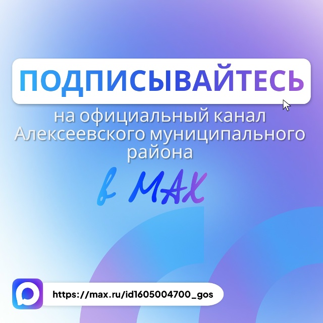 Подписывайтесь на официальный канал Алексеевского района, чтобы всегда оставаться в курсе всех событий clck.ru/3SVimG.