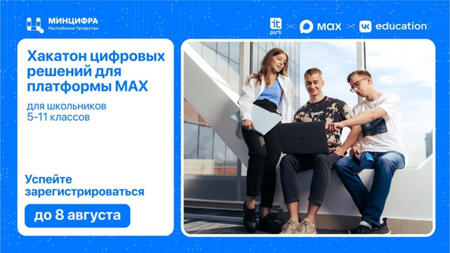 Цифровая команда Татарстана с платформой MAX и VK Education запускают уникальный проект для школьников — хакатон цифровых решений, где ребята смогут создать собственных чат-ботов для национального мессенджера MAX.