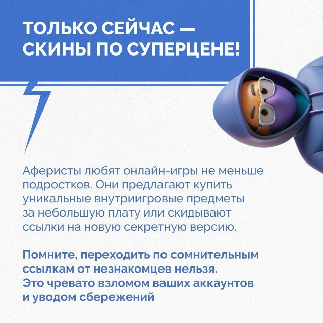 Продолжая рубрику #БезопасноеЛето, рассказываем в карточках о частых уловках, на которые попадаются дети, и о том, как их защитить.