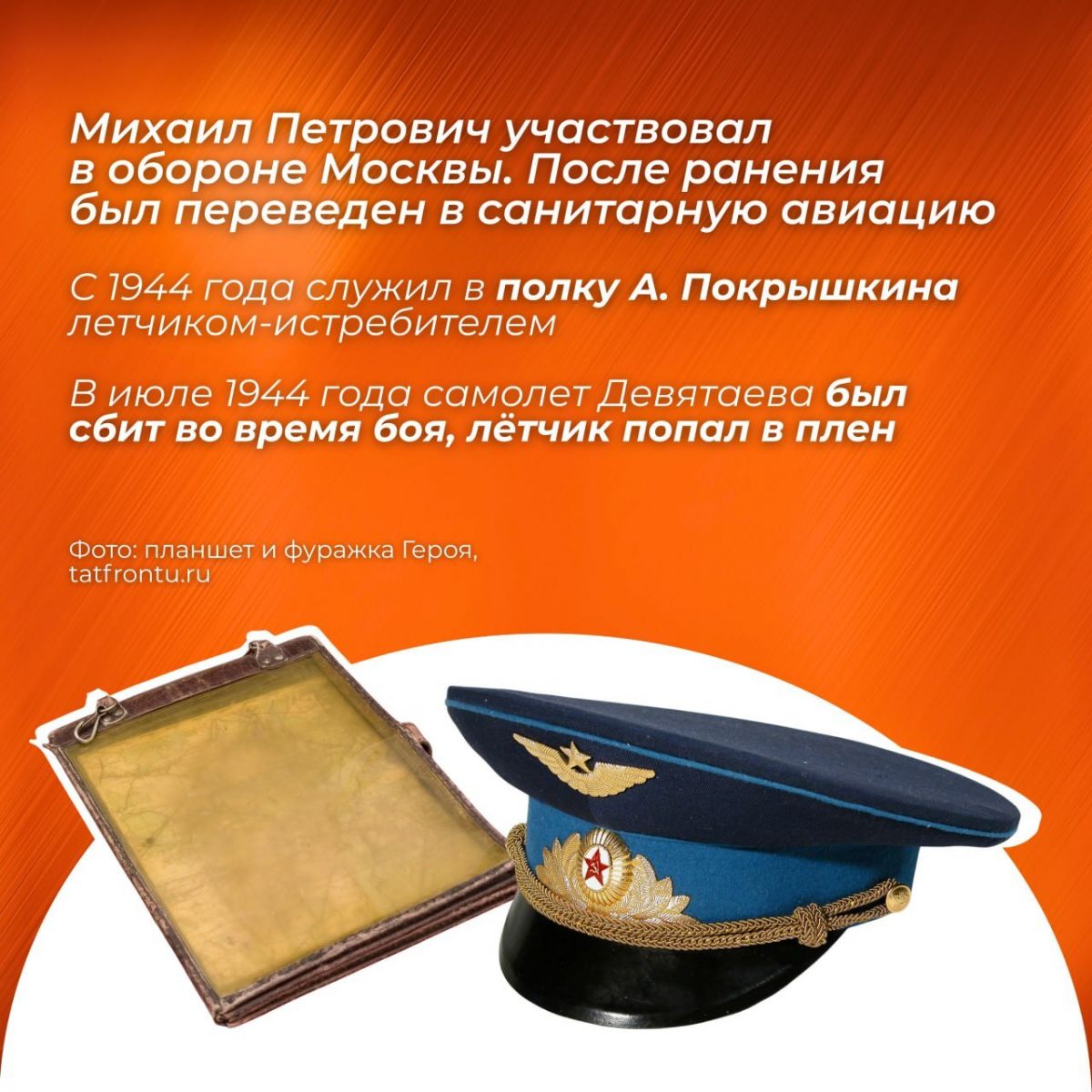 Татарстан белән бәйле Бөек Ватан сугышы геройлары турында сөйләвебезне дәвам итәбез 8 июльдә танылган очучы, Советлар Союзы Герое Михаил Девятаевның тууына 108 ел тулды. Язмышы мавыктыргыч фильмга охшаган кешене! Концлагерьга килеп эләккәч, ул мөмкин булмаганны эшли: иптәшләре белән бергә дошман истребителен һавага күтәрә һәм, аның белән 300 км араны үтеп, мөһим разведка мәгълүматларын җиткерә. Михаил Девятаев тормышы турында тулырак итеп карточкаларда сөйлибез. #Победа80 #Героитатарстан