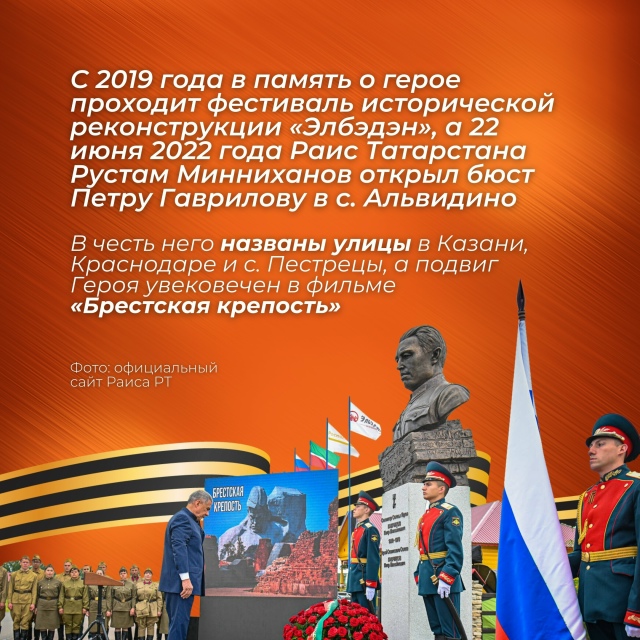 Бөек Ватан сугышының легендар геройлары турындагы рубрикабызны дәвам итәбез. 30 июньдә Петр Михайлович Гавриловның тууына 125 ел тула. Аны «Брест крепостеның соңгы сакчысы»дип атыйлар иде. Крепость оборонасына җитәкчелек иткән өчен аңа Советлар Союзы Герое исеме бирелә???? Бу гаҗәеп кешенең тормышы һәм батырлыгы турында карточкалардан укыгыз. #Победа80 #Героитатарстан