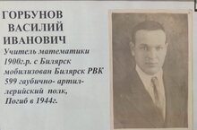 #БилярскаяСОШ"Җиңүнең 80 еллыгына багышлана. Биләр мәктәбе укытучылары, Бөек Ватан сугышында катнашучылар" Горбунов Василий Иванович Бөек Ватан сугышы башында Биләр мәктәбендә математика укытучысы булып эшләгән. Ул 1900 елда Биләрдә туа. Биләр РВКсы фронтка чакырылганнан соң, 599 гаубица - артиллерия полкында сугышкан. 1944 елда Ватан өчен сугышканда һәлак була. Безнең мәктәптә хезмәт укытучысы булып Девяткин Петр Семенович эшләде. Ул 1899 елгы төп питерлы иде. 1942 елның 4 маенда Ватанны саклауга басарга чират җитте. Ул 226 нчы укчы дивизия составында кызылармеец званиесендә авторотада сугышкан. Ул 1942 елның декабрендә яралардан үлә. Биләр мәктәбенең яшь башлангыч сыйныф укытучысы Канунов Семен Иванович яшьтәшләре белән фронтка китә һәм хәбәрсез югала. #Җиңү 80 #Укытучылар #Биләркаясош