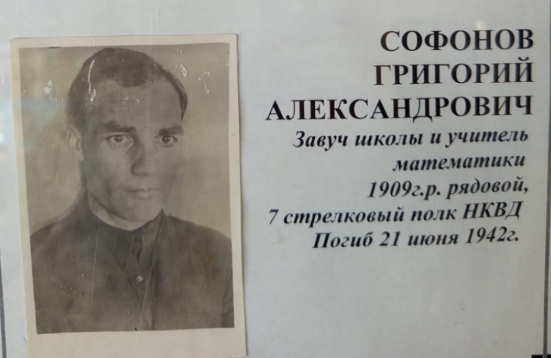 Софонов Григорий Александрович работал в Билярской школе завучем и учителем математики. Он родился в Билярске в 1909 году и был призван на фронт вслед за директором школы. Воевал рядовым в 7 стрелковом полку НКВД. Геройски погиб защищая Родину в тяжелых боях в июне 1942 года.