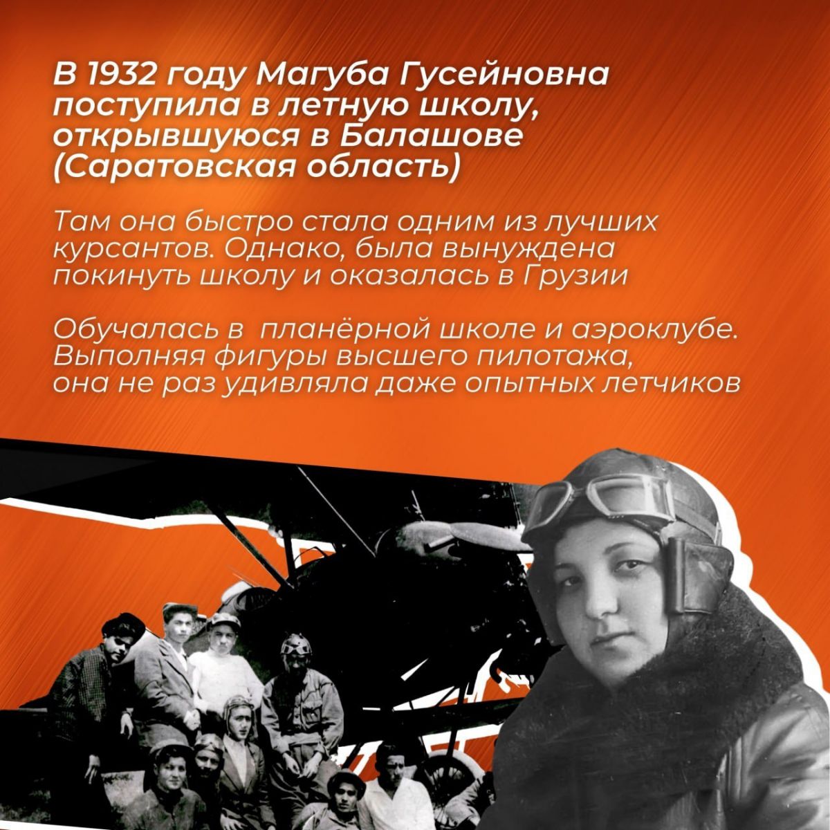 Сегодня расскажем про удивительную женщину – летчицу Магубу Гусейновну Сыртланову.