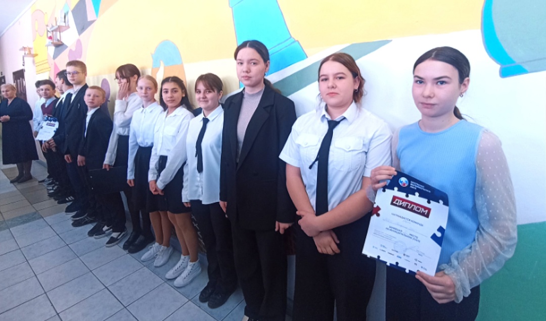 Заместитель директора по воспитательной работе Билярской школы Михайлова Елена Викторовна вручила грамоты активным ребятам за результаты в конкурсах. 7 класс поделился новостями. Затем вся школа направилась в свои классы на Разговоры о важном.