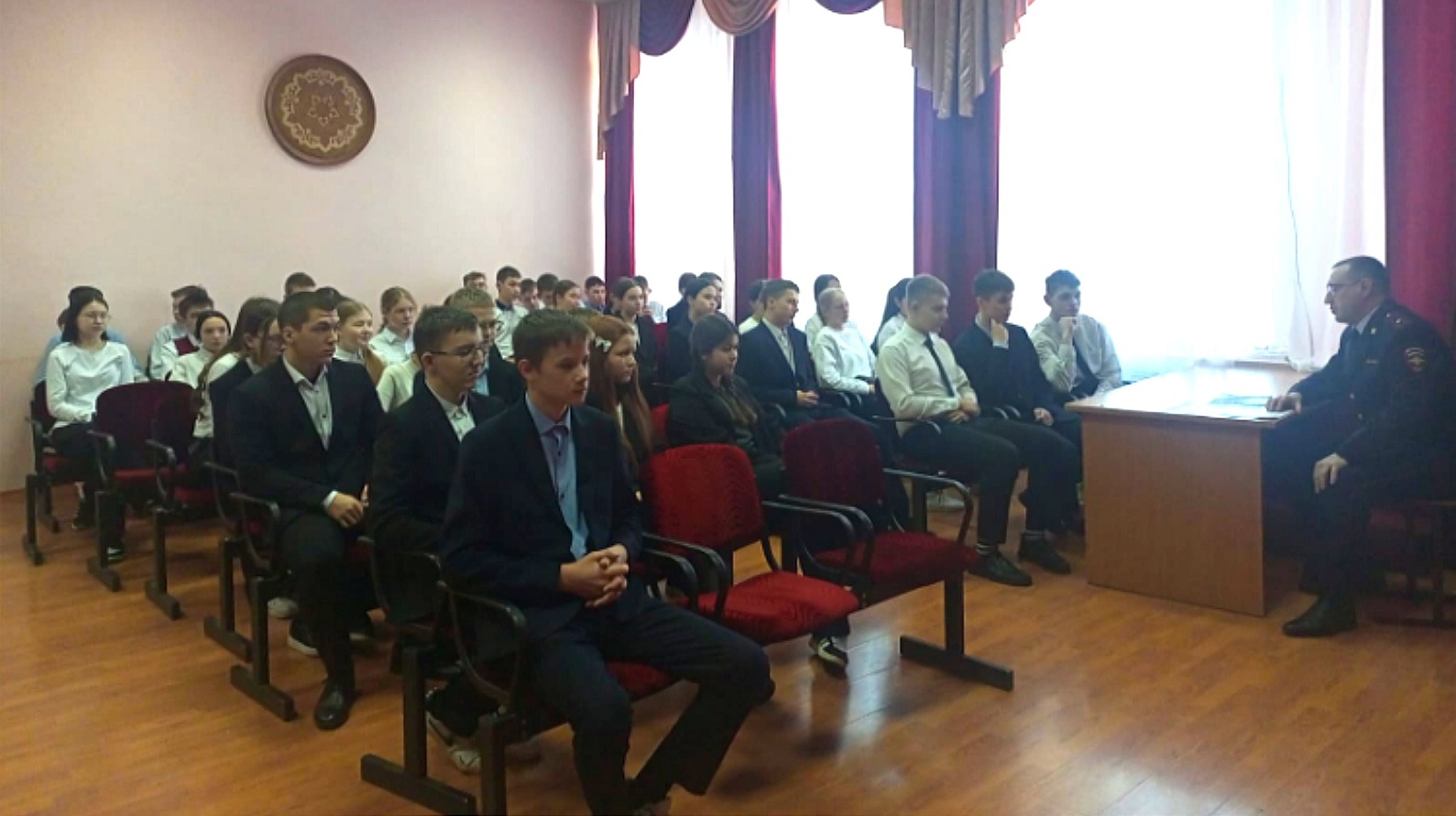 Александр Владимирович поделился своим опытом, рассказывая об особенностях работы в правоохранительных органах, условиях службы, а также о возможностях карьерного роста. Проинформировал об условиях при поступлении и перспективах обучения в учебных заведений. После беседы