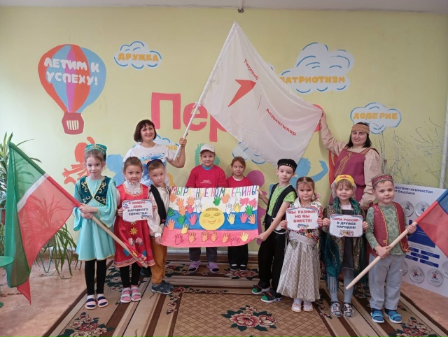 В Билярском детском саду "Сказка" состоялось замечательное мероприятие, организованное участниками Движения Первых Билярской школы, приуроченное ко Дню народного единства. Это событие прошло в теплой и дружелюбной атмосфере, где дети узнали о значении этого праздника и о важности единства и согласия в нашем обществе.