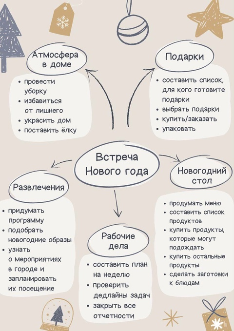 Нового Яңа елга бик аз вакыт кала, ә эшләр аз түгелме әле? Сезнең өчен курантлар сугышына кадәр эшләргә өлгерергә кирәк булган эшләр белән карта әзерләдек. Ул бәйрәм кәефе тудырып кына калмыйча, киләсесе җиңел һәм шатлыклы башлансын өчен бу елны дөрес тәмамларга да ярдәм итәчәк. Зад үз бурычларыгызны буш картага яза аласыз. Саклагыз???? Исегездәме, иң мөһиме — сезнең уңай кәефегез һәм киләсе ел сезгә күп шатлык һәм уңышлар китерәчәгенә ышаныч!