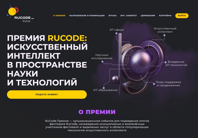 В целях признания достижений в области применения и популяризации технологий искусственного интеллекта в науке и образовании Министерством науки и высшего образования Российской Федерации в рамках Десятилетия науки и технологий принимаются заявки на общенациональную премию RuCode, призовой фонд которой составляет более 3 млн.рублей.