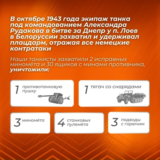 Ватанны саклаучылар елында исемнәре Бөек Җиңү тарихына мәңгелеккә язылган якташларыгыз белән таныштыруны дәвам итәбез. Бүген безнең хикәябез Рудаков Александр Павлович турында, аның тормышы Бөгелмә белән тыгыз бәйләнгән иде. Советлар Союзы Герое исеменә лаек булган танк командирының тарихын белү өчен карточкаларыгызны ачыгыз #Победа80 #Героитатарстан
