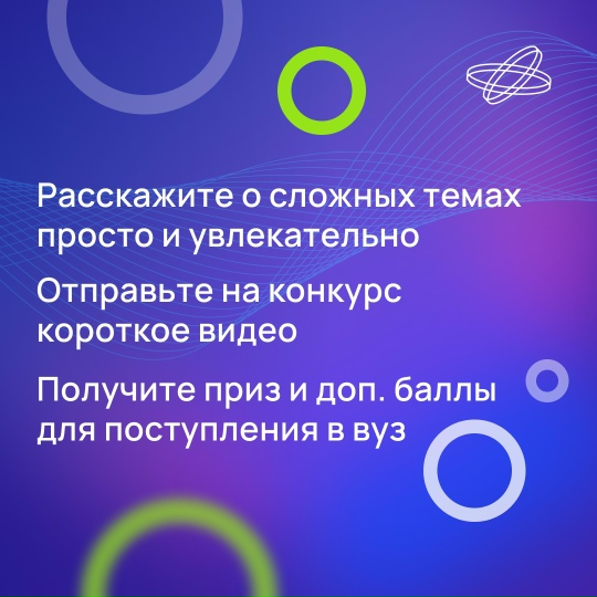 Подробнее о конкурсе«Беләсеңме? " фәнни-популяр видео конкурсының 5 нче сезоны старт алды.Өйрәт!» 2 2025 елның 14 октябрендә " беләсеңме?Өйрәт!». Конкурс укучыларга үзләрен булачак яшь галимнәр буларак танытырга, Фәнне популярлаштыручы талантларын күрсәтергә һәм үз проектларын һәм идеяләрен күрсәтергә мөмкинлек бирә. Җиңүчеләрне мавыктыргыч сәфәрләр, заманча техника һәм илнең әйдәп баручы югары уку йортларының берсеннән абитуриентлар өчен өстәмә баллар көтә. Конкур конкурста катнашу өчен өч минутлык фәнни-популяр видео яздырырга һәм аны сайтта бастырырга кирәк clck.ru/3Psb2r Конкур конкурс турында тулырак