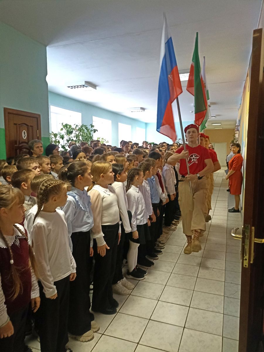 Сегодня в Билярской школе прошла торжественная линейка, которая началась с исполнения гимнов и поднятия флагов. Директор школы Климова М. А. поделилась планами на предстоящую неделю, вручила грамоты и дипломы ребятам и их руководителям, участвовавших в различных конкурсах и мероприятиях. 5 класс поделился новостями. Затем все классы последовали в свои кабинеты на Разговоры о важном.
