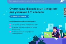 Онлайн-олимпиада продлится до 23 декабря для учеников 1-11 классов. Она направлена на повышение уровня киберграмотности. Школьники смогут проверить и улучшить свои навыки безопасного пользования интернетом и цифровыми устройствами на образовательной платформе Учи.ру.