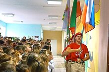 На мероприятии присутствовали ученики, преподаватели, а также представители- первенцы отделения юнармейцев. Гости поделились своими впечатлениями от походов, соревнований и мастер-классов, в которых они принимали участие.