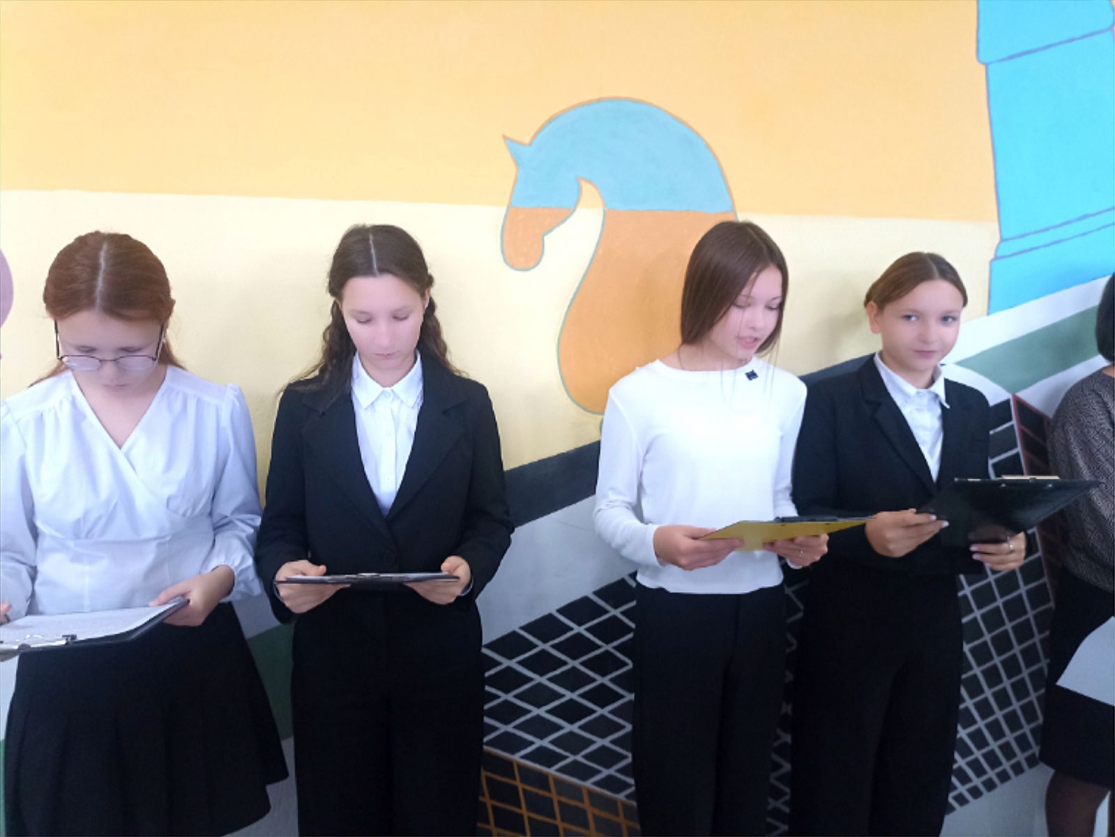 Сегодня еженедельная линейка состоялась с поднятия флагов и пения гимнов РФ и РТ. Советник директора по воспитанию Борисова Н. Ю. поздравила ребят с результативными конкурсами и вручила грамоты. Ребята 7 класса поделились новостями. Затем вся школа последовала в классы на "Разговоры о важном".