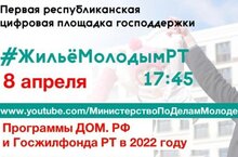8 апреля 2022 года в 17.45 Министерство по делам молодежи Республики Татарстан проводит прямой эфир #ЖильёМолодымРТ с трансляцией на YouTube канале в целях информирования молодежи о действующих в Республике Татарстан программах и мерах государственной поддержки молодых семей, молодых специалистов в приобретении льготного жилья в 2022 году в условиях внешнего секционного давления.