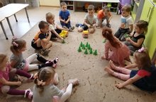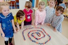 Педагог познакомила детей с понятиями "на", "над", "под". На занятии продолжили изучение цифры и числа 3 и цвет.