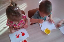 В ходе занятия педагог развивала у детей умение рисовать гуашью, учила правильно держать кисть.