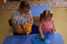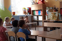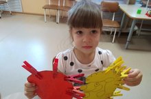 Педагог познакомила детей с домашними птицами, с внешним видом петуха, его повадками; продолжала закреплять у ребят понятие "семья". В ходе игры "Накорми цыплёнка" малыши развивалаи мелкую моторику рук.