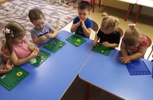 Педагог закрепляла у детей умение работать с пластилином, показала приём раскатывания комочка. Дети лепили палочки для заборчика.