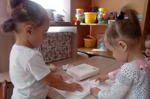 На занятиии по лепке дети познакомились с пластилином и его свойствами. Научились разминать его пальцами, развивали мелкую моторику.