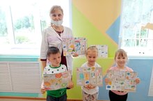 На занятии дети учились самостоятельно составлять общую композицию. Воспитатель развивала у детей творческую фантазию и воображение, а также воспитывала интерес к творчеству.