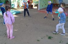 В рамках "Недели физкультуры дети старшей группы играли в на свежем воздухе в игры с мячом.