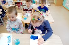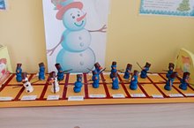 На занятии Эндже Масхутовна учила детей передавать образ снеговика, развивая при этом мелкую моторику, мышление, речь. А также закрепила с детьми понятия "большой", "маленький".