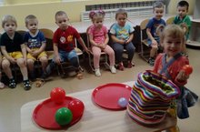 В гостях у детей побывали две куклы: Большая кукла – Катя и маленькая кукла – Маша. Дети доставали из мешочка кубики, и шарики, распределяли по величине (большие и маленькие). Большие шарики и кубики дети отдали большой кукле - Кате, а маленькие шарики и кубики маленькой кукле – Маше.В конце занятия дети поиграли с кубиками и шарами: распределяли их по величине: в большую и маленькую коробки.