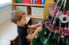 Трудную задачу перед детьми поставила Ольга Анатольевна. С помощью пластилина и ножниц им нужно было изобразить ёлочку. Дети справились!