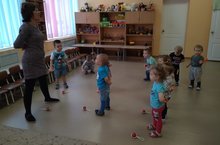Физкультурное занятие с веселой погремушкой в первой группе раннего возраста. 26.02.2019