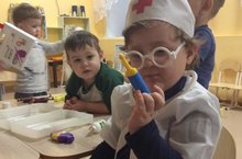 Неделя тематики «Я вырасту здоровым» во 2 группе раннего возраста началась с ознакомления с профессией доктора, после чего с увлечением поиграли в сюжетно-ролевую игру «Больница», где в роли доктора хотелось побывать большинству девочек, а мальчики предпочитали пока оставаться наблюдателями.