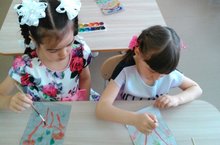 Самые младшие воспитанники учились рисовать ладошкой и кисточкой, а также закрепляли знание о красном и зелёном цветах.