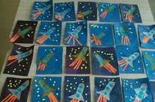Ждут нас быстрые ракеты для полета на планете, на какую захотим, на такую полетим. Дети средней группы с воспитателем Поповниной Е.П. нарисовали рисунки, выполнили аппликацию на тему: "Ракета летит в космос". Вот такие замечательные работы получилось у ребят.