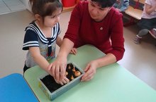 Воспитатель подготовительной группы Богатова О.Н. познакомила детей с историей создания пуговиц. Ольга Николаевна обучала детей планировать этапы выполнения работы, соблюдать последовательную цепочку действий: правильно отмерить нить, вдеть нитку в иголку, завязать узелок, пришить пуговицу. Дети совместно с воспитателем закрепили правила техники безопасности при работе с ножницами и иглой.