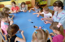 Воспитатель Сергевнина С.В. учила самых маленьких воспитанников нашего детского сада технике рисования краской (обмакивать кисть в краску по мере надобности), закрепляла умение правильно держать кисть. Рисование красками воспитывает аккуратность у детей и развивает их творческую активность.