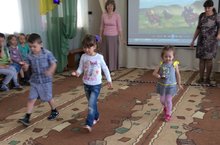 Дети стршей группы (воспитатели Суркова М.Г. и Сергевнина С.В.) после занятий собираются на прогулку, где они могут поиграть в свои любимые игры: сюжетно-ролевые "Семья", подвижные "Море волнуется" и другие. Одной из самых любимых и популярных игр является игра "Гөрләвек" - "Ручеёк".