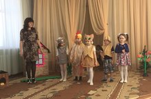 В музыкальном зале прошло театрализованное представление под руководством воспитателя по татарскому языку Гатиной Гульфии Гайнуловны. Участвовали дети старшей и подготовительной гупп. Представление было на татарском языке, с целью воспитывать желание общаться на татарском языке.