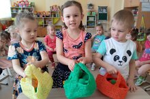 Аппликация в младшей группе Б на тему: "Ходит в небе солнышко " 13.04.2022