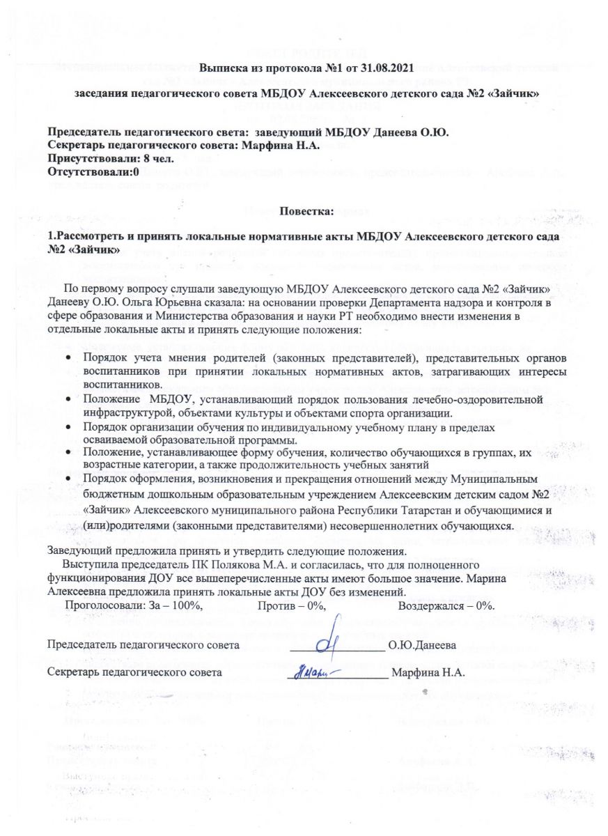 Заседание педагогического совета МБДОУ Алексеевский д/с №2 № "Зайчик"