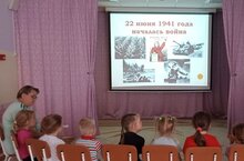22 июня – «Дня памяти и скорби» в нашем детском саду прошло тематические мероприятие информационный час «Завтра была война». Дети отметили дату минутой молчания под звуки метронома, слушали песню «Вставай, страна огромная!», прошли по Аллеи Памяти, где рассмотрели картины художников написанные в ноенные годы.