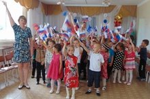 На фото дети младшей группы, которые под руководством Миндубаевой А.М., рисовали флаги России
