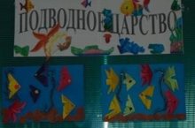 Вот так дети старшей группы представляют себе морских обитателей. Под руководством воспитателя Левшиной О.В. они выполнили лепку и аппликацию на тему «Водное царство»На фото работы детей старшей группы
